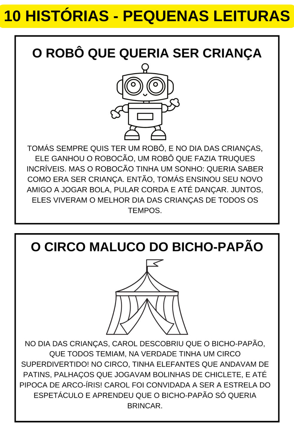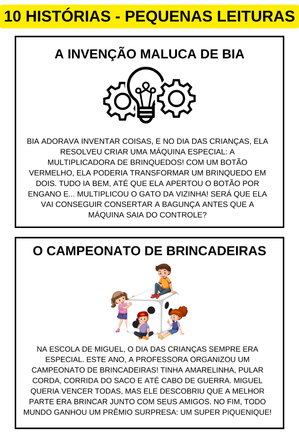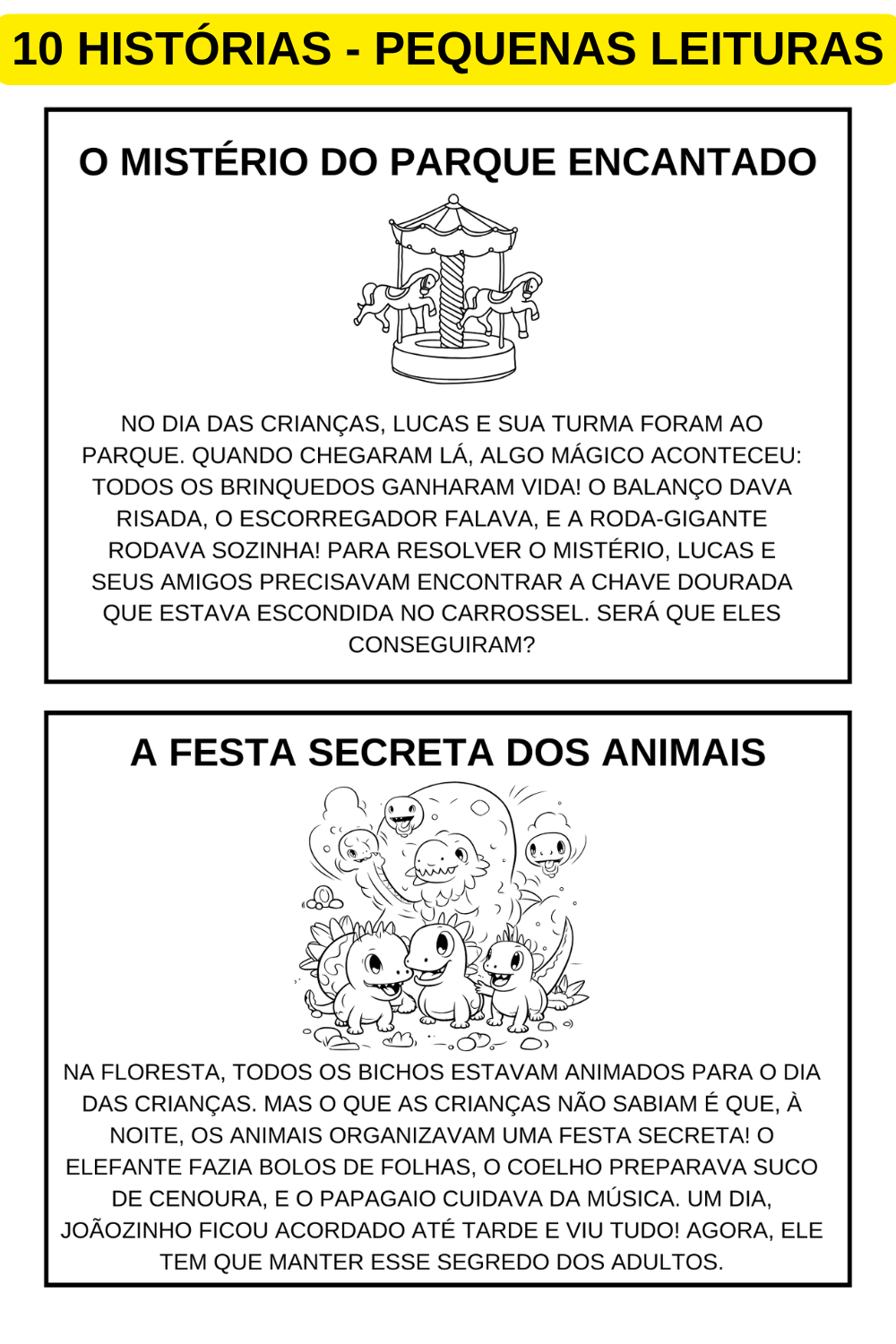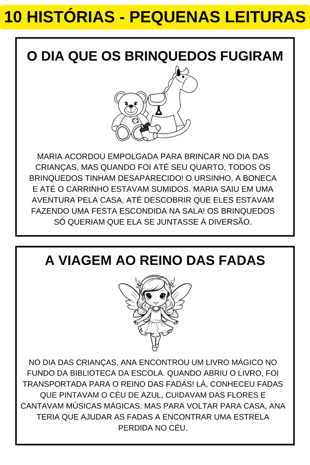 Este material reúne 10 fichas de leitura cuidadosamente elaboradas, com histórias curtas, atrativas e adequadas ao nível da Educação Infantil e Ensino Fundamental 1.
