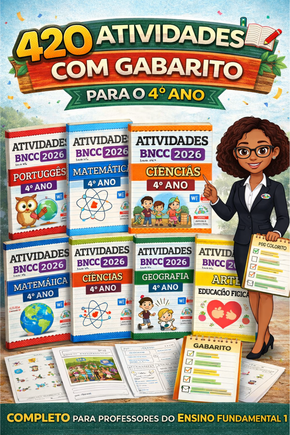 Transforme sua rotina pedagógica com um material completo, organizado e pronto para uso! Este super pacote reúne 420 atividades do 4º ano, alinhadas à BNCC, com gabarito incluso e propostas diversificadas para todo o ano letivo.