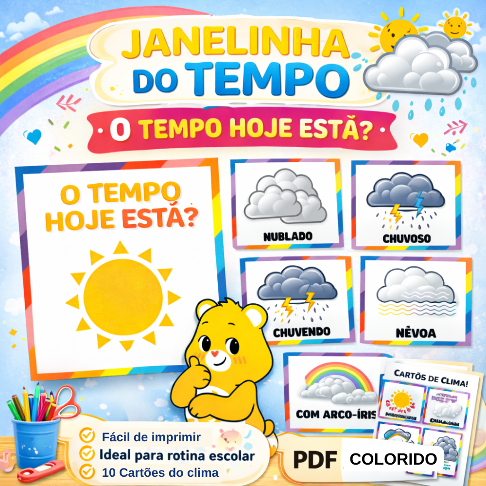 Com visual colorido, atrativo e de fácil compreensão, o material auxilia as crianças a observarem e identificarem as condições climáticas do dia.