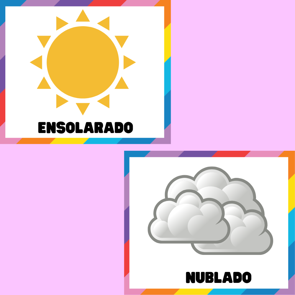 ✔️ Cartões ilustrados de clima (ex: ensolarado, nublado, chuvoso, etc.)